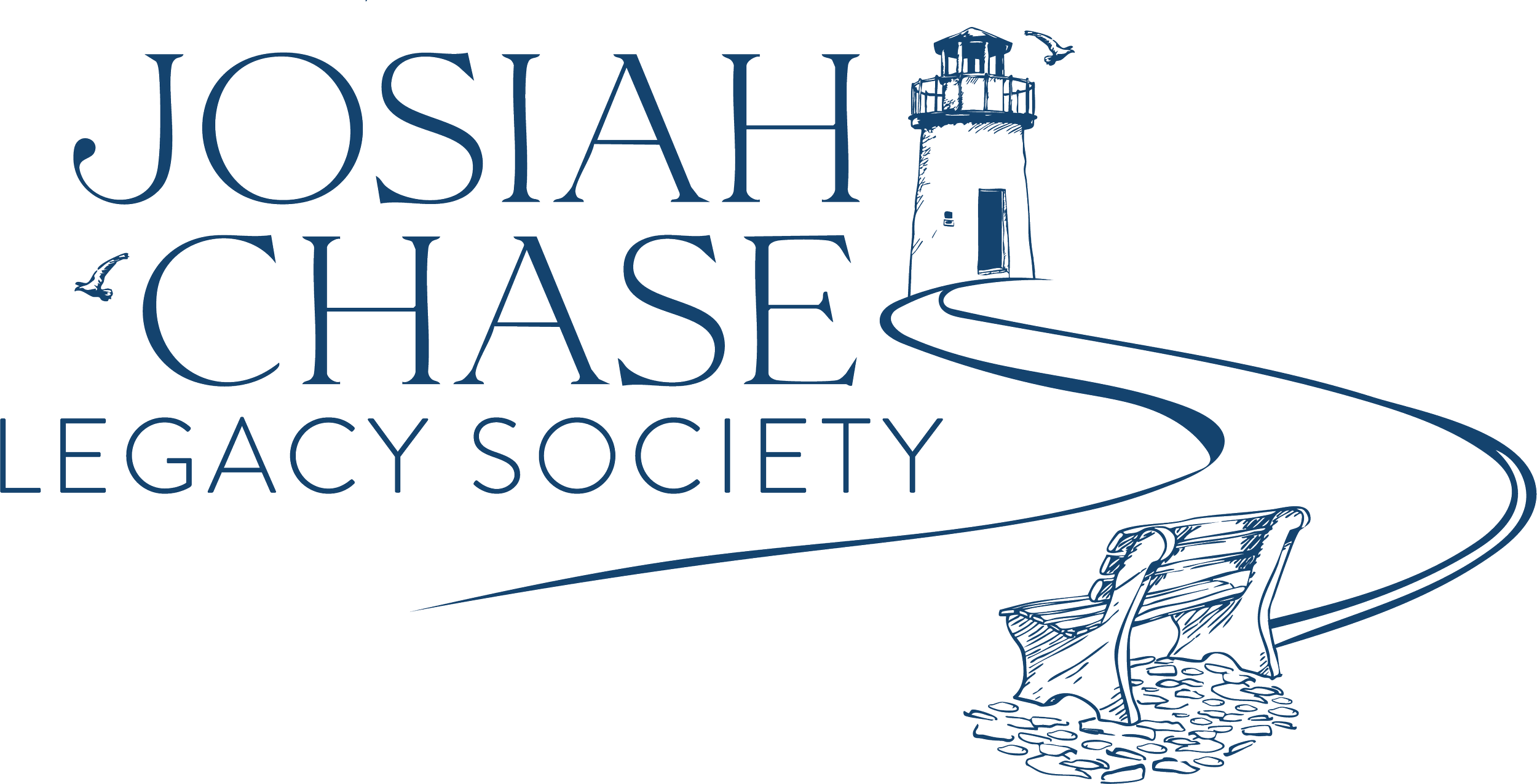 Logo for Josiah Chase Legacy Society featuring a lighthouse, a path, a bench, and the text 'Josiah Chase Legacy Society' in blue.