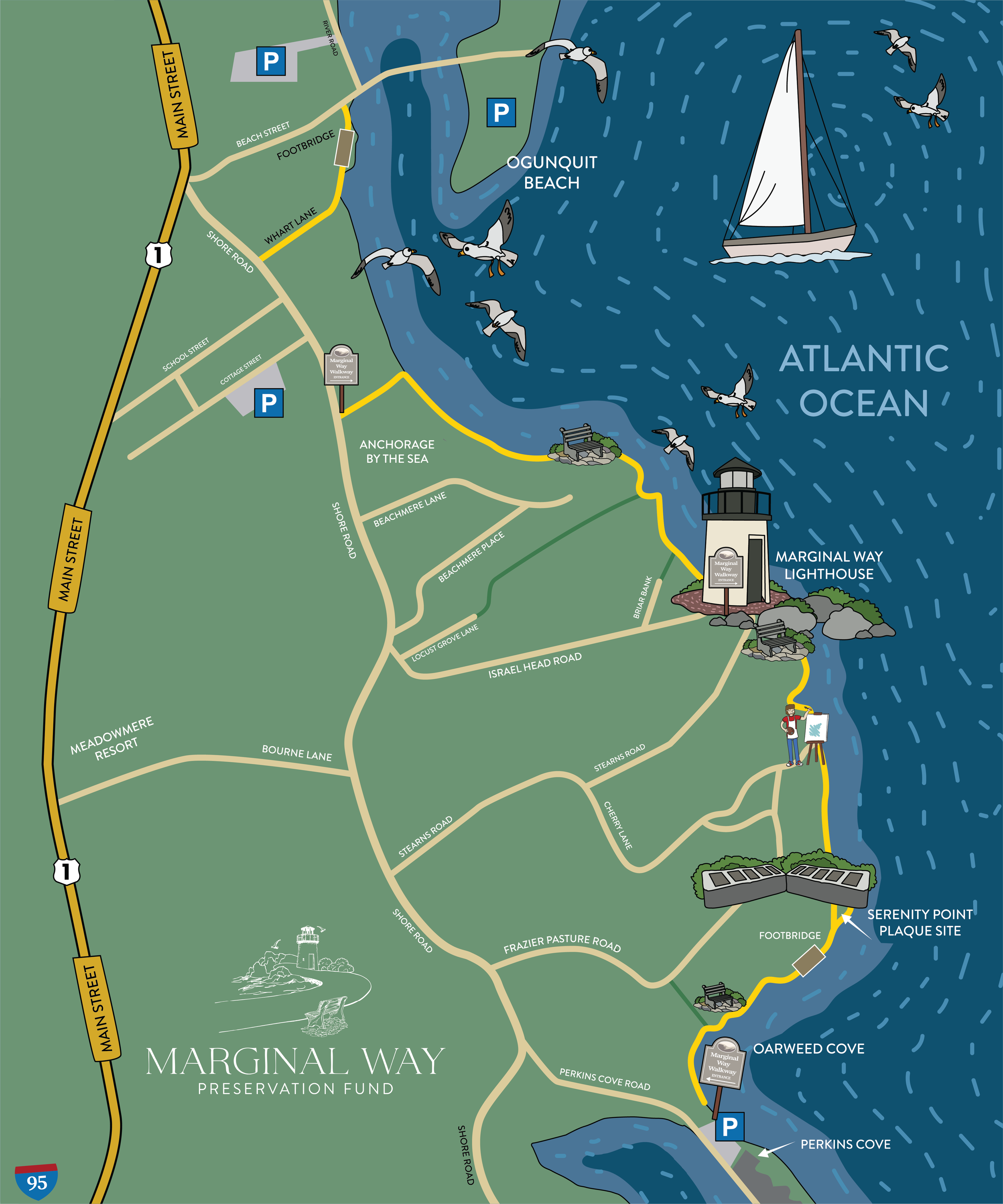 You’ll find the following items on our map:Pedestrian accessFootpath trailLocal roadsPublic parking areasSitting benches with their numbersView or download the map in PDF format here.